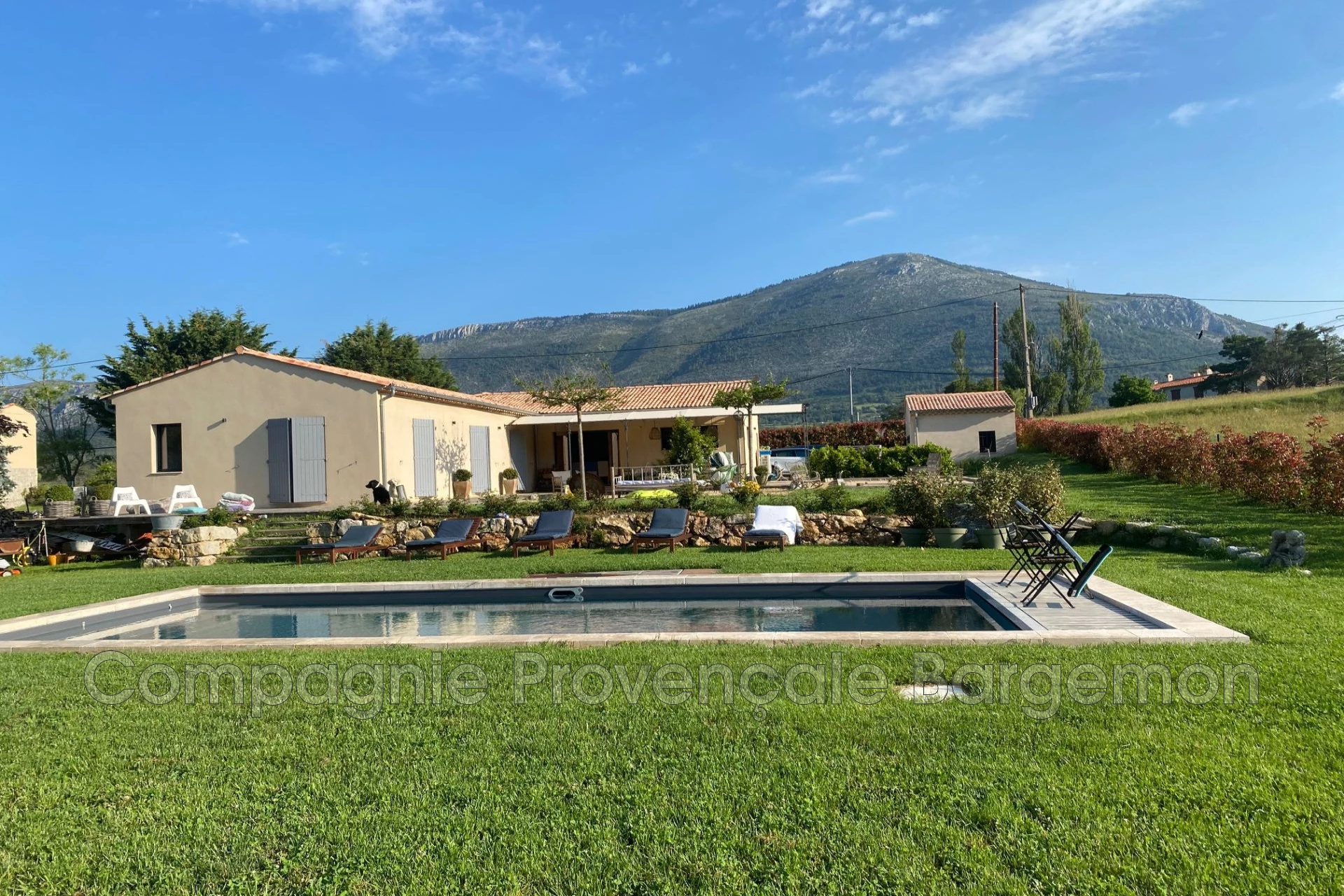 À La Roque Esclapon, un village du Haut-Var, proche du golf de Taulane vous trouvez cette belle maison construite en 2016 avec beaucoup de gout et des beaux matériaux. Env. 155 m2 plain-pied composée de: L'entre avec WC invité.